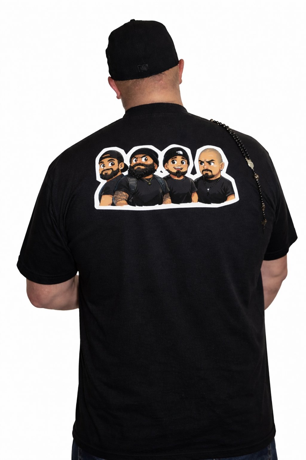 This tee features the PPH logo on the front and a chibi-style cartoon version of the Poly Paranormal Hunters crew on the back. If you’re wondering what chibi means, it’s that fun cartoon style with big heads, small bodies, and heaps of personality.