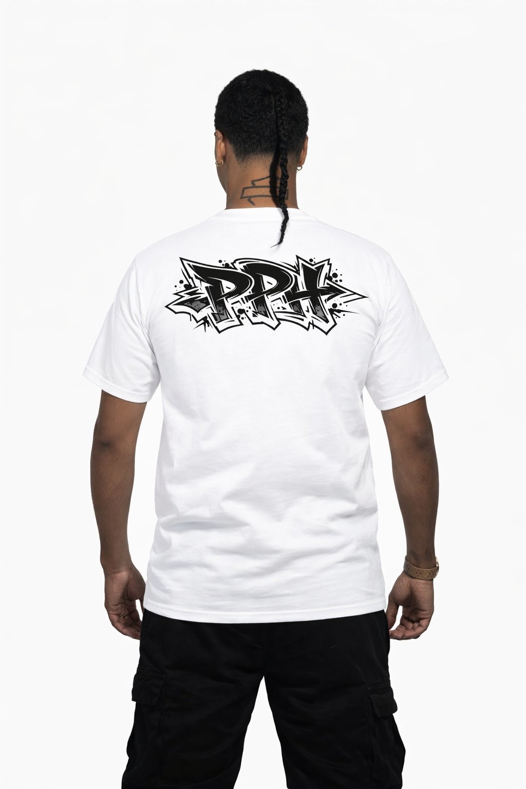 Featuring a clean PPH wildstyle graffiti hit across the shoulders, this tee keeps the front minimal with a small Watcher figure print, while the back brings the attitude.